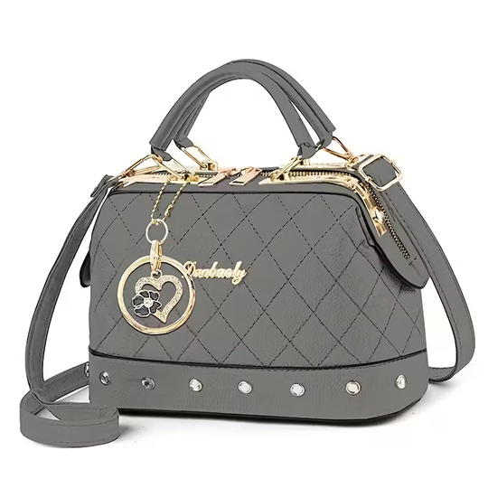 Black Quilted Boston Bag with Golden-Tone Hardware