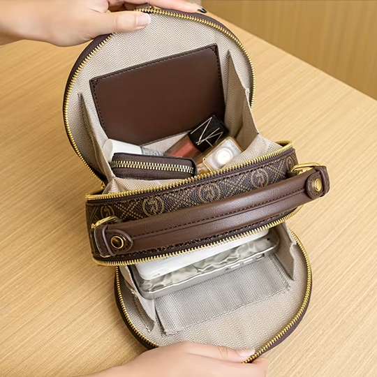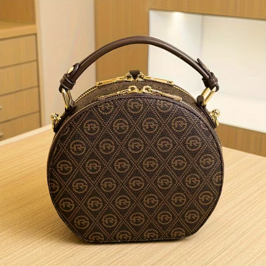 / Elegant Geometric Patterned Round Shoulder Bag